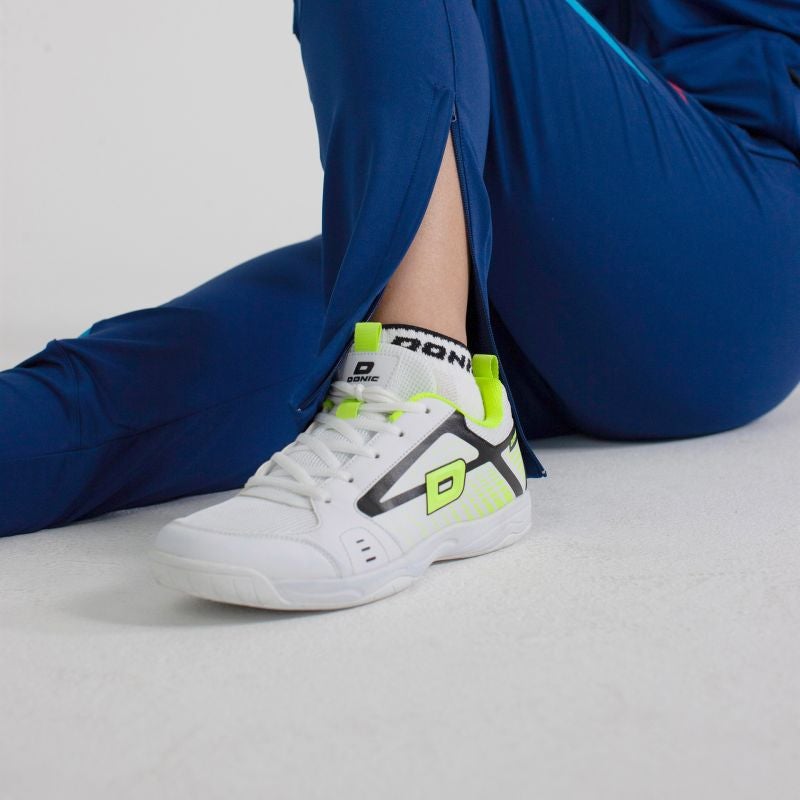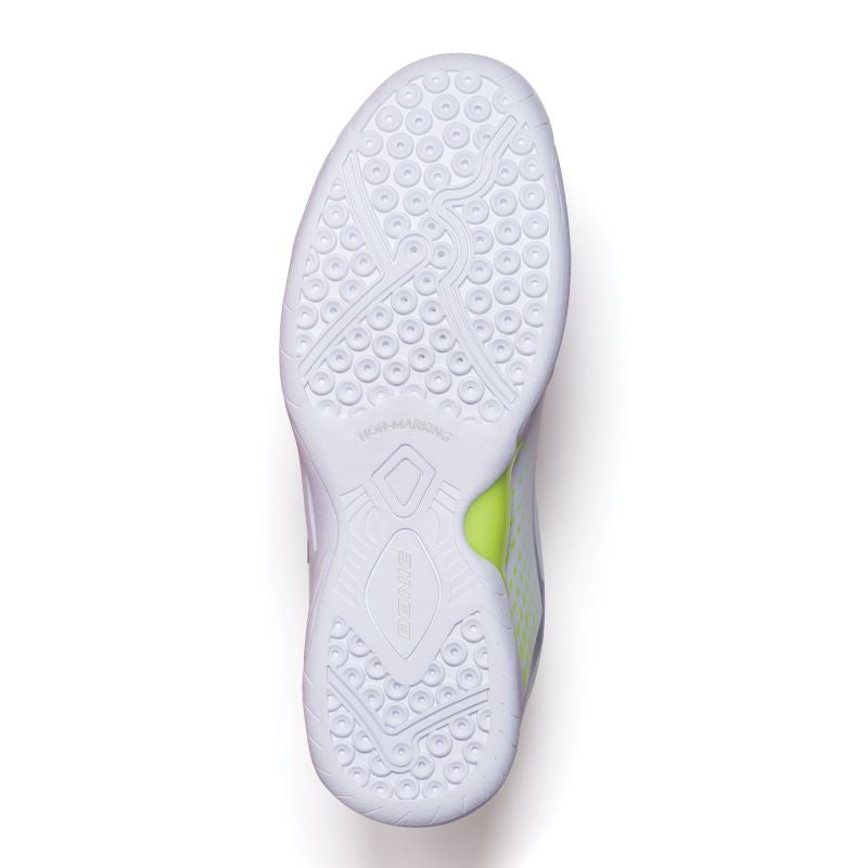 Die abriebfeste Non-Marking-Phylon-Außensohle gewährleistet starke Traktion auf trockenen Hallenböden und unterstützt präzise Beinarbeit, kontrollierte Antritte sowie sichere Stopps – ein klarer Vorteil im schnellen Tischtennisspiel.